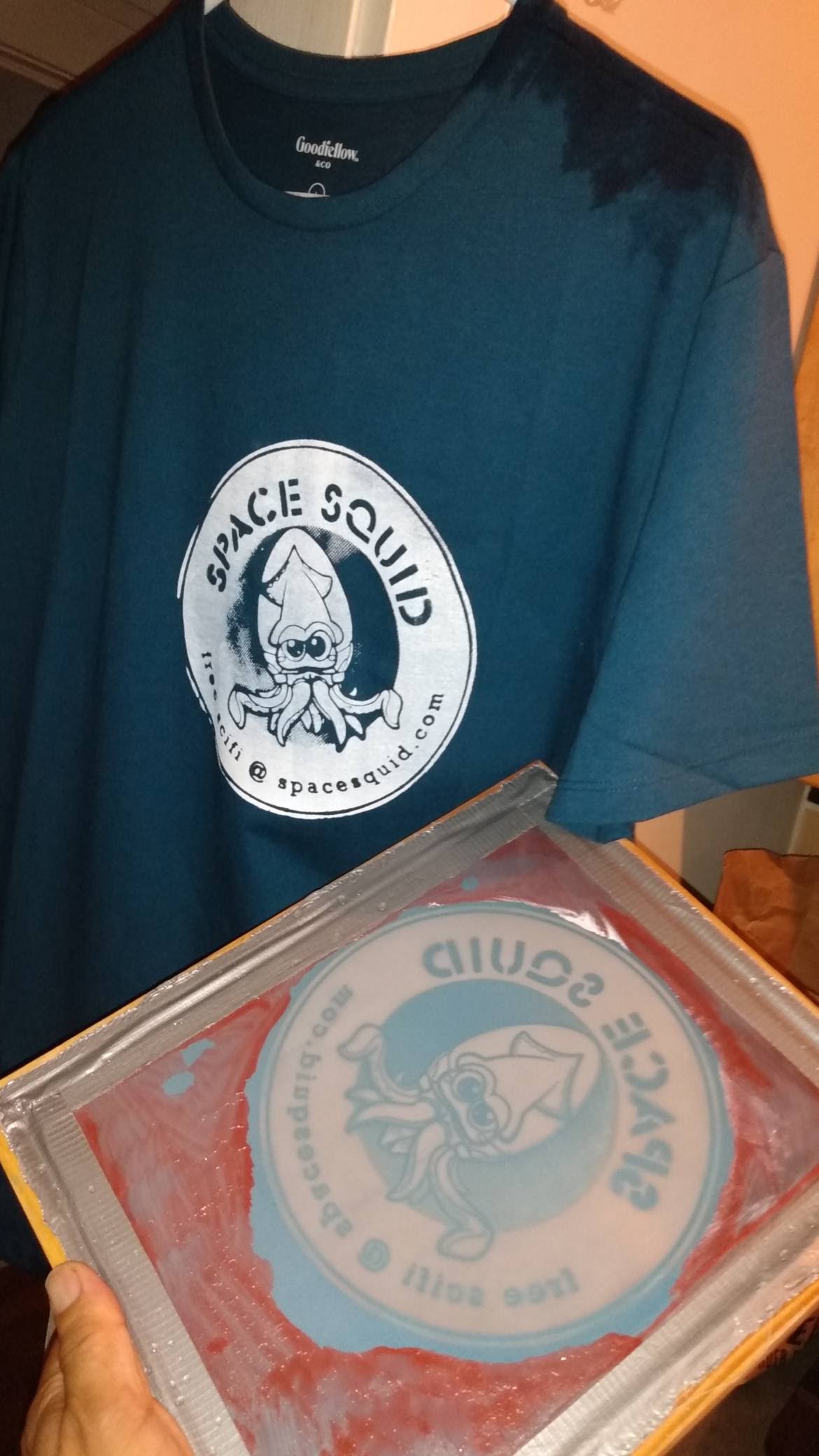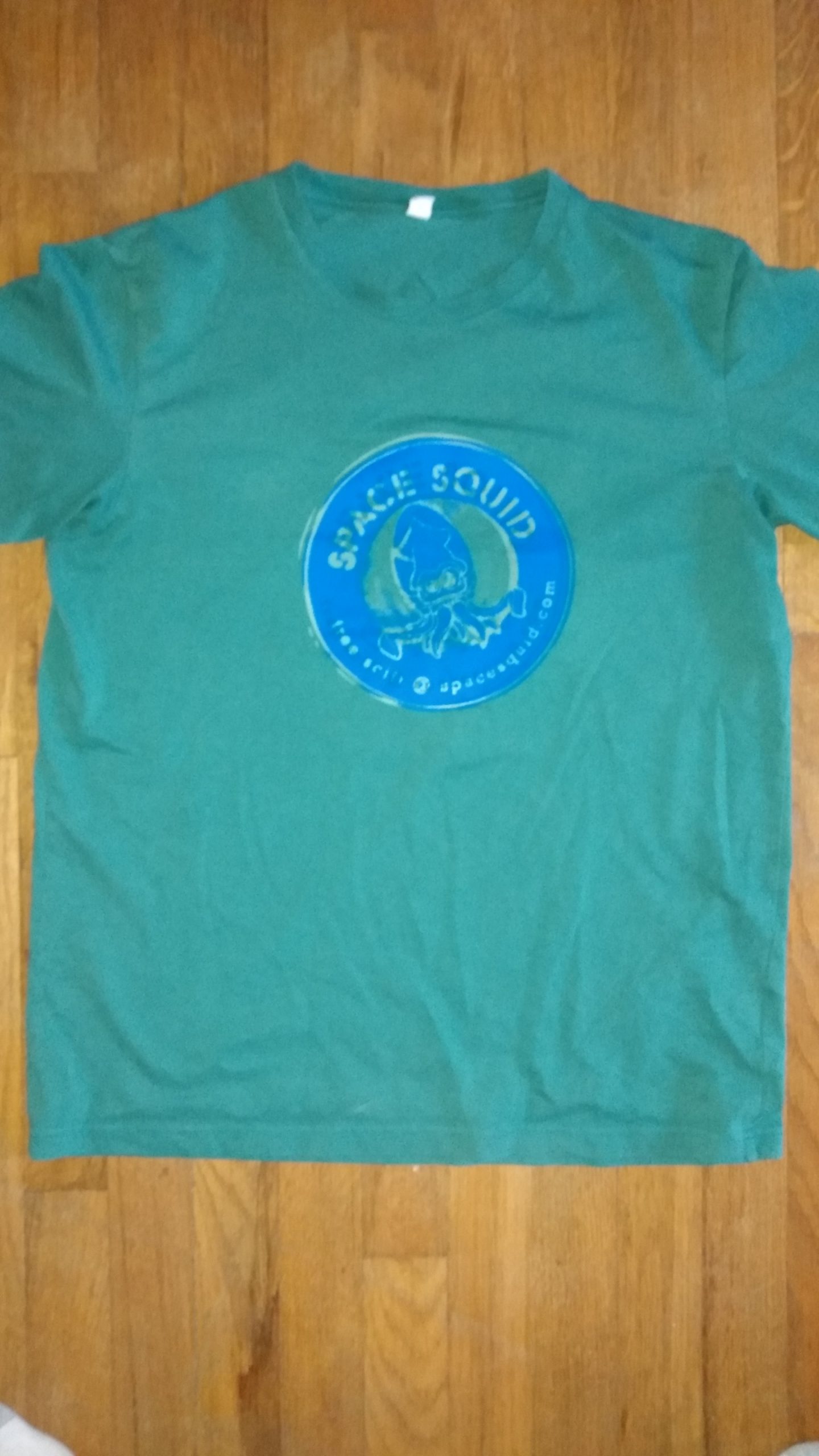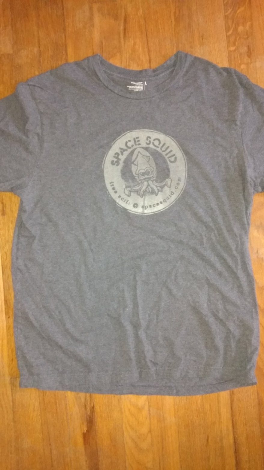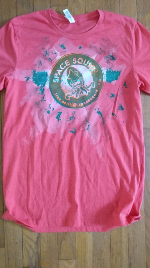 The gray shirt in the image gallery above is an example of a Squid logo shirt with glow-in-the-dark ink. If you’d like one of these, your price is $18 per shirt with shipping or $14 per shirt if you can arrange with us to pick up your shirt at a location like Armadillocon in October, Central Market North, PCL Library at UT, Jo’s Coffee downtown, or the Magnolia Cafe. Just use the DONATE link on the homepage, send us the appropriate $, and make sure to specify your shirt design, shirt sizes, preferred meetup spot if any, and contact info in the “Add a note” field.