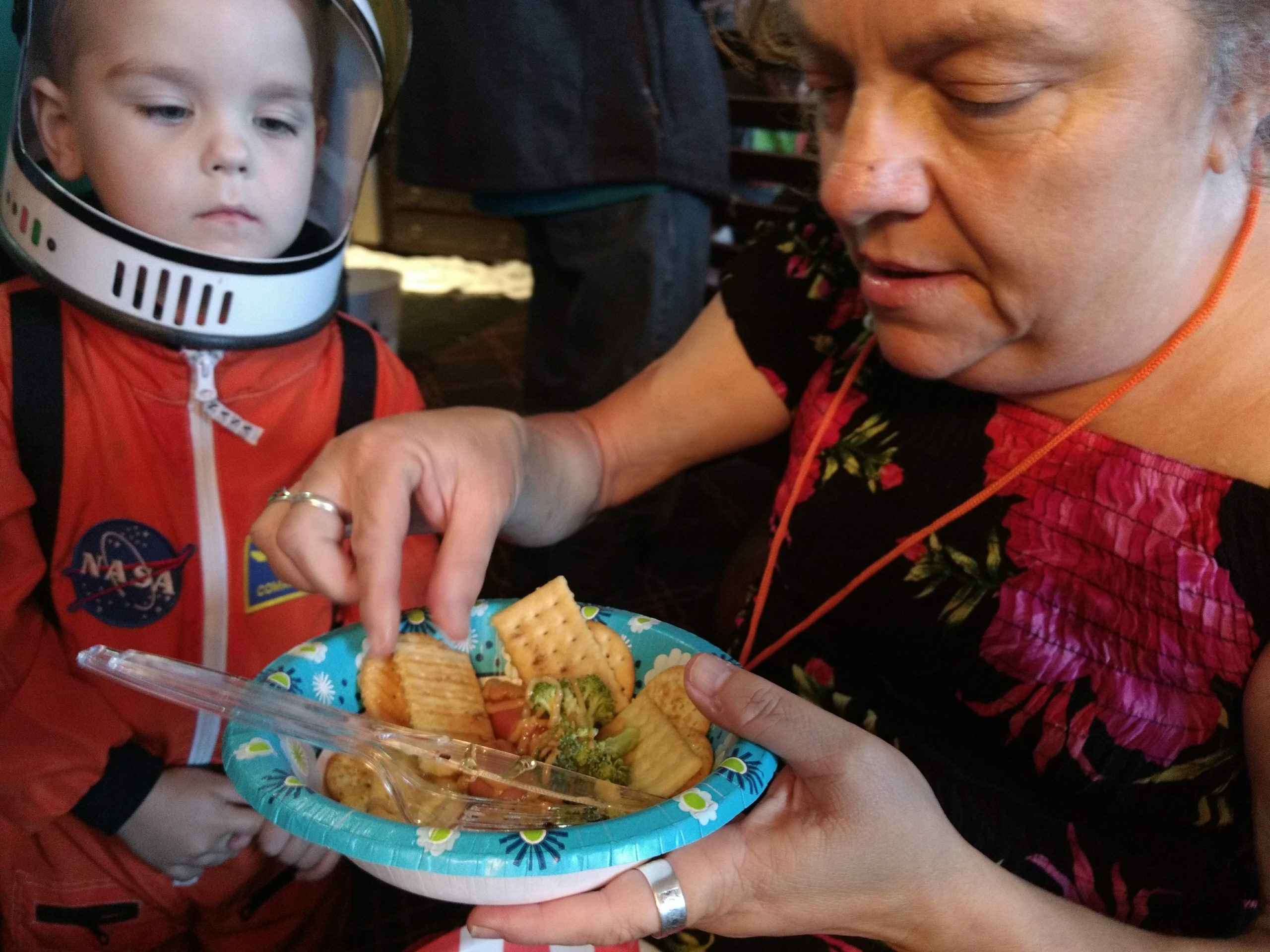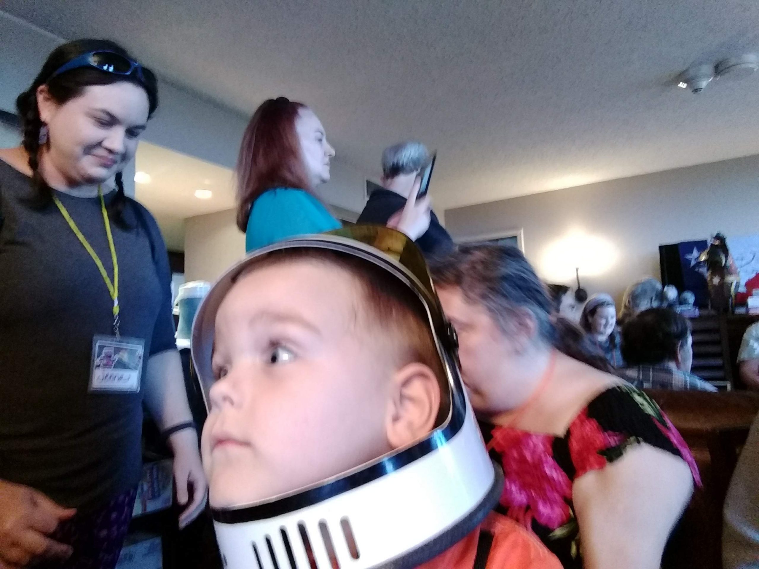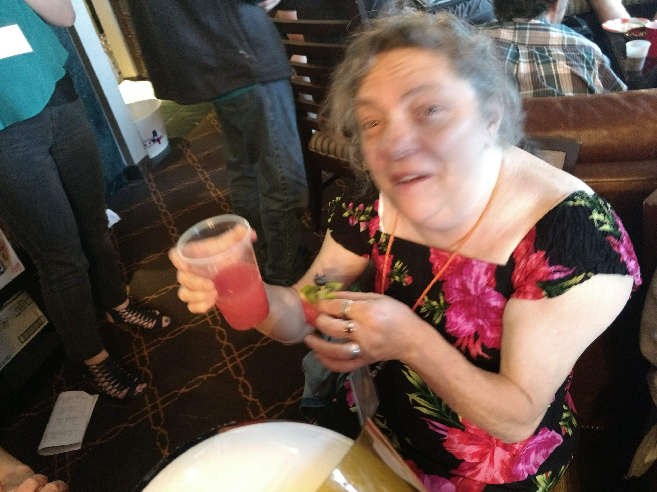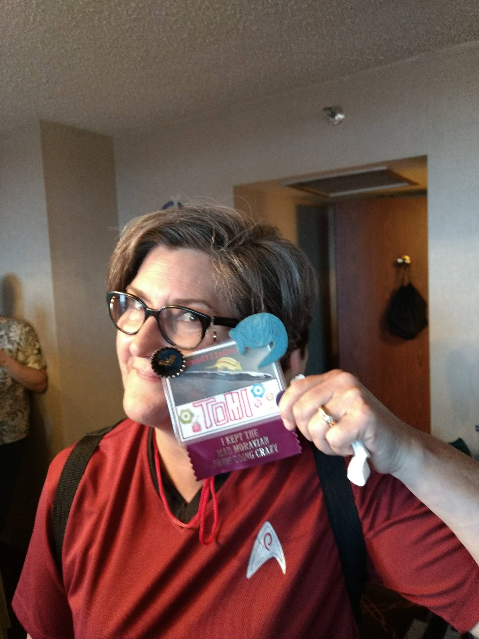 Back when people could eat food together in small, indoor rooms, the erstwhile founders of Space Squid decided it would be fun to make Armadillocon writers create flash fiction stories in five minutes and then judge these creations in a frenzy of shame and laughter. We’ve got some award-winning examples in the next section. But there’s more! Said founders also decided that the chaos was not complete enough with the flash fiction. We needed also to force Dillocon attendees to compete for culinary supremacy using only the ingredients available to them in the con’s hospitality suite. Edible creations (using the adjective loosely) would be crafted in a five-minute timeframe and subjected to the scrutiny of Melissa Tolliver, the hospitality suite impresario and visionary. We present here a collection of photos from the 2018 contest, in which Melissa shows an astonishing range of emotions as she is subjected to the cruelties of the contest: shock, puzzlement, wonderment, disgust, surprise, and even enjoyment. Photos by culinary contest overlord Matthew “Michael Bay” Bey.